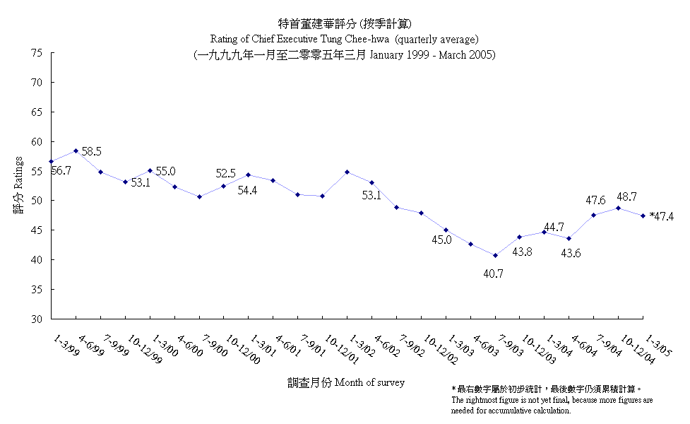 特首董建華評分 (按季計算) Rating of Chief Executive Tung Chee-hwa (quarterly average) |