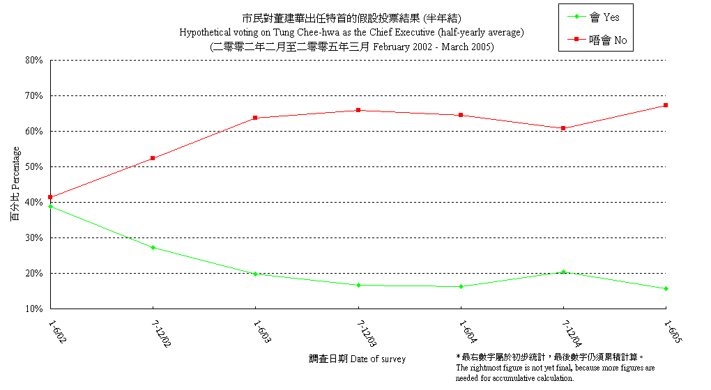 市民對董建華出任特首的假設投票結果 (半年結) Hypothetical voting on Tung Chee-hwa as the Chief Executive (half-yearly average) |
