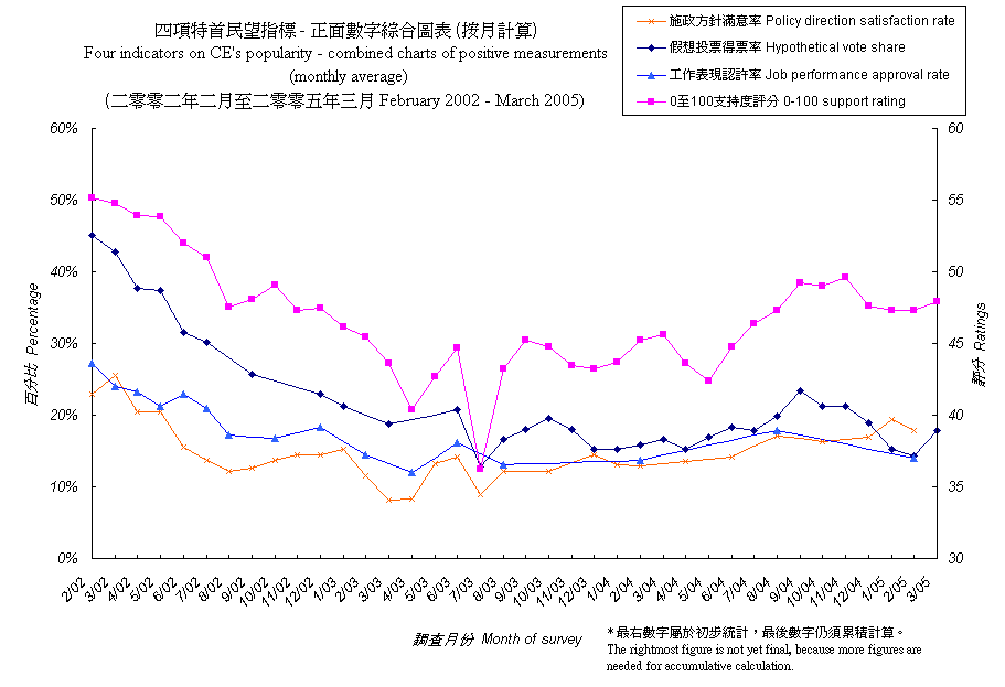 四項特首民望指標 - 正面數字綜合圖表 (按月計算)