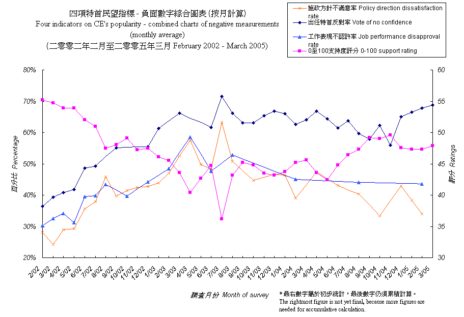 四項特首民望指標 - 負面數字綜合圖表 (按月計算)