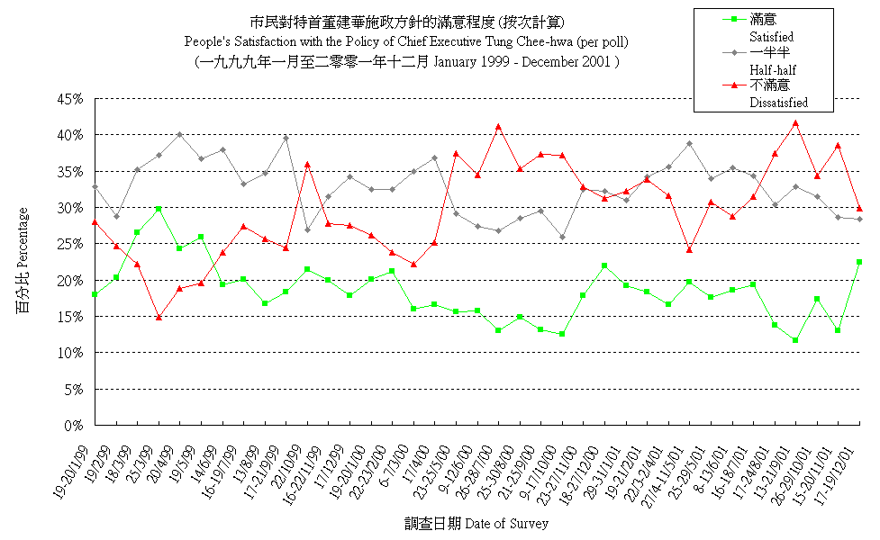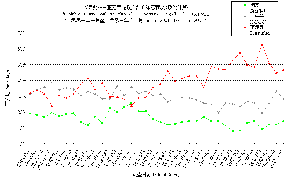 市民對特首董建華施政方針的滿意程度 (按次計算) People's Satisfaction with the Policy Direction of Chief Executive Tung Chee-hwa (per poll) |